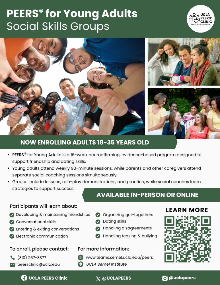 For information about our PEERS® for Young Adults Telehealth groups, click here.
