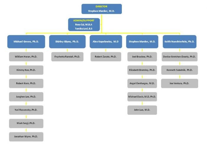 The Center is led by Keith H. Nuechterlein, Ph.D., Professor of Psychology at the University of California, Los Angeles, and Director of the Aftercare Program, a research clinic for schizophrenic patients, UCLA Semel Institute of Neuroscience and Human Behavior. Dr. Nuechterlein specializes in neurocognitive processes in schizophrenia, especially as they relate to both the developmental course of the disorder and to functional outcome. Dr. Nuechterlein’s ongoing longitudinal study of the early course of schizophrenia, “Developmental Processes in Schizophrenic Disorders”, has closely examined the influence of specific neurocognitive vulnerability indicators on the early course of first-episode patients, with an emphasis on occupational and educational outcome. He holds a joint...